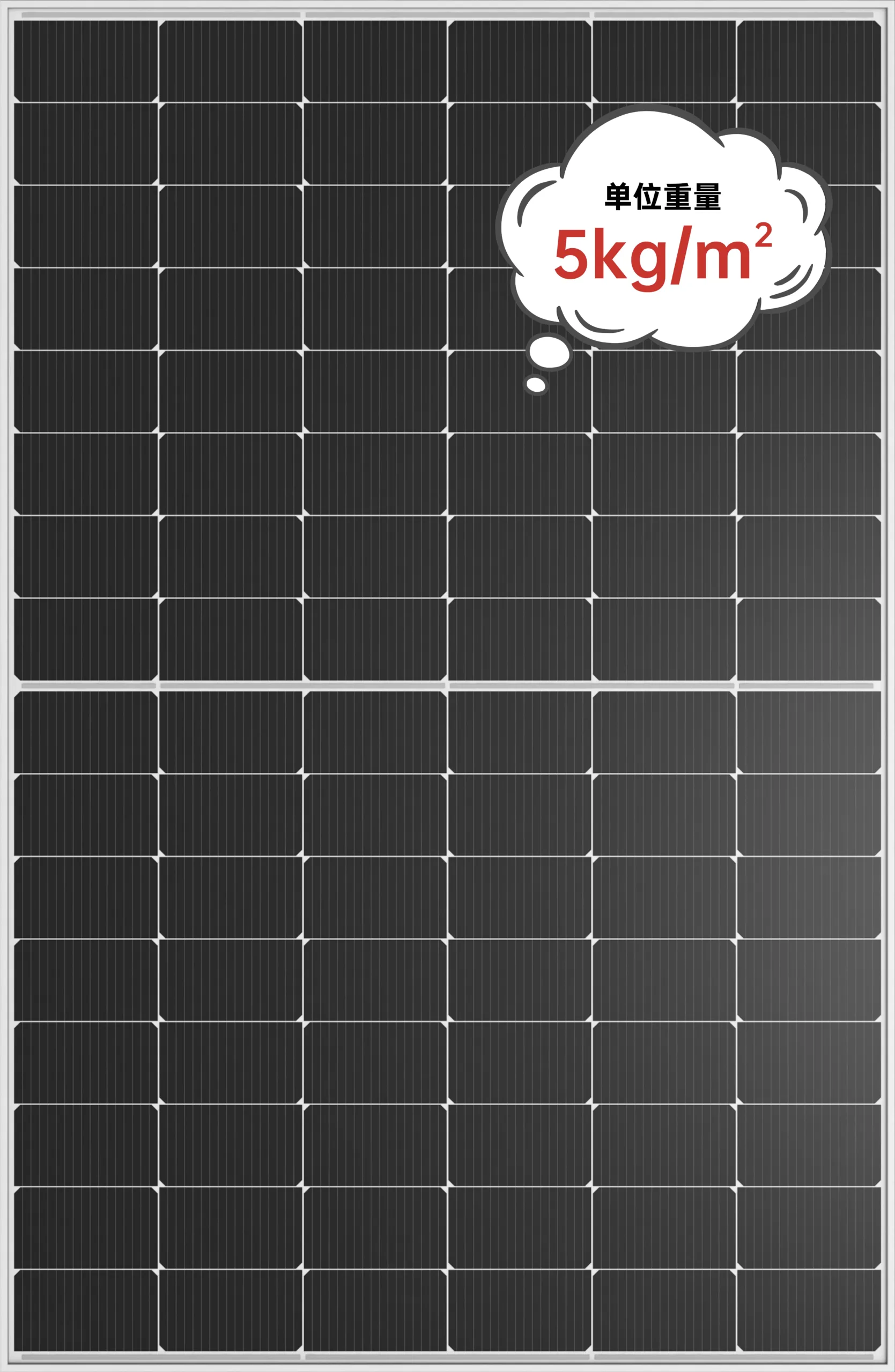 軽量2.8kg/㎡、片面ガラスより70%も軽く、運送コストを大幅削減。防眩デザインで日射量を効率的に取り込み、架台不要で簡単設置。フレキシブル構造により、多彩なシーンで活躍する次世代の太陽光パネルです。